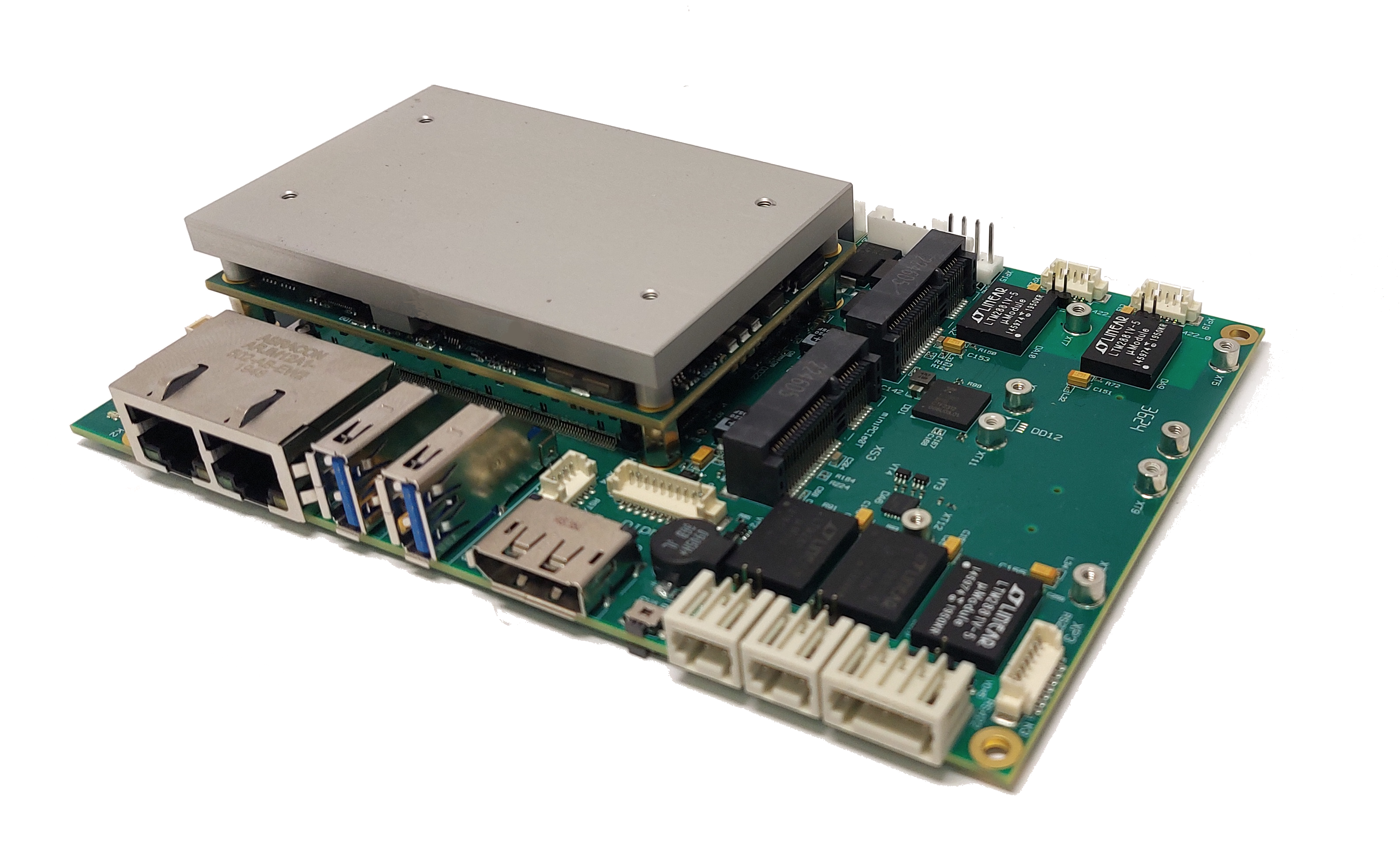 - Интерфейсы: 1×SATA 3.0, 2×Gigabit Ethernet, 2×USB 2.0, 2×USB 3.0, DisplayPort, LVDS, 3×RS-422/485, 1×RS-232, 2×CAN 2.0, 16 GPIO, разъём microSD